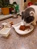 Füttere deiner ausgewachsenen Katze (4 kg) pro Tag 3 Töpfchen + 25 g