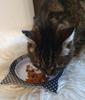 Hermann und Lilly haben den Lachs nicht so schnell akzeptiert wie das Huhn. Es wurde lange beschnuppert und auch nur langsam gefressen . Schade, war anscheinend nicht ihr Geschmack.